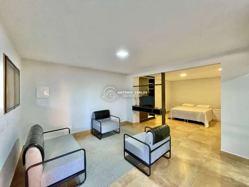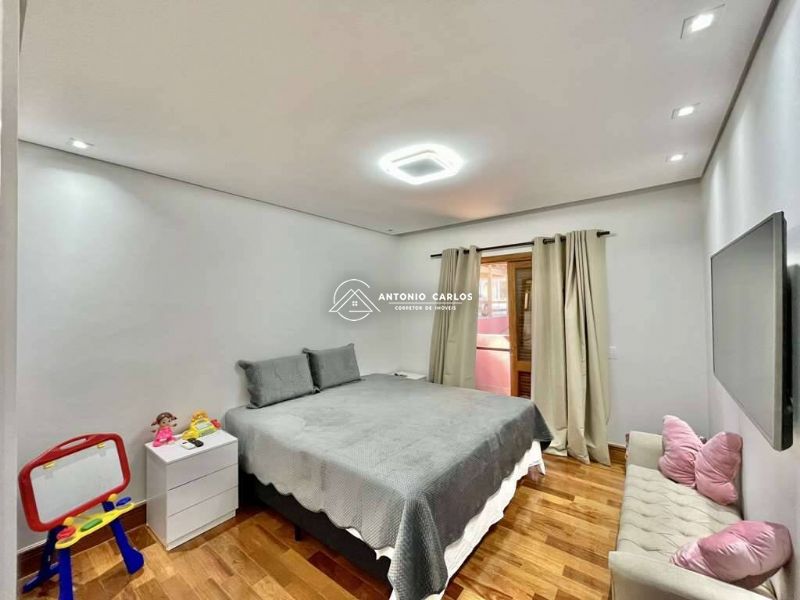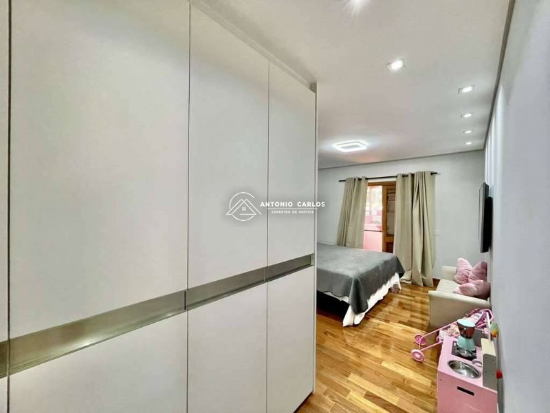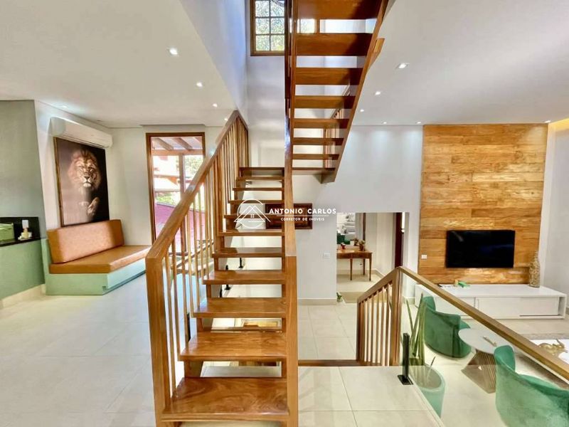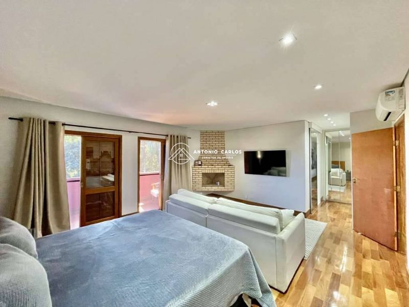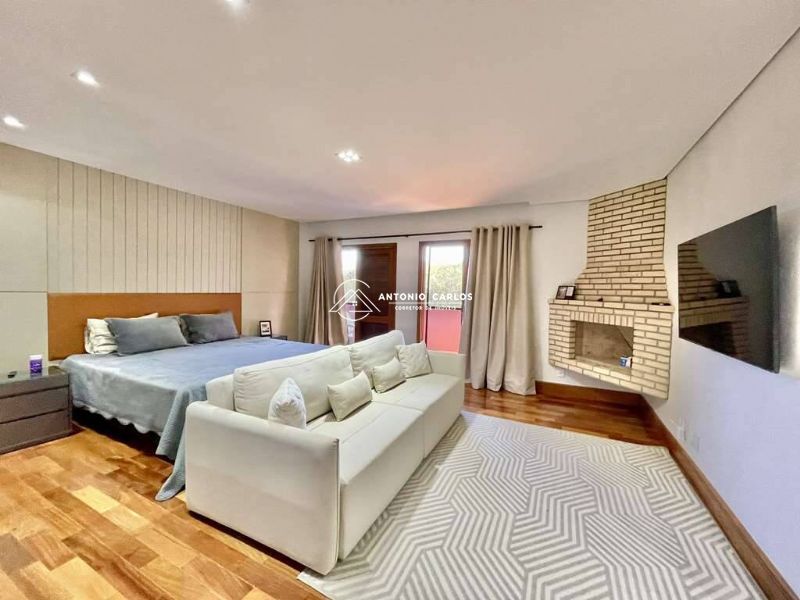 4 suítes, sendo 3 suítes internas com ar condicionado Q e F e armários, sendo a master com saleta, lareira, closet e varanda.
