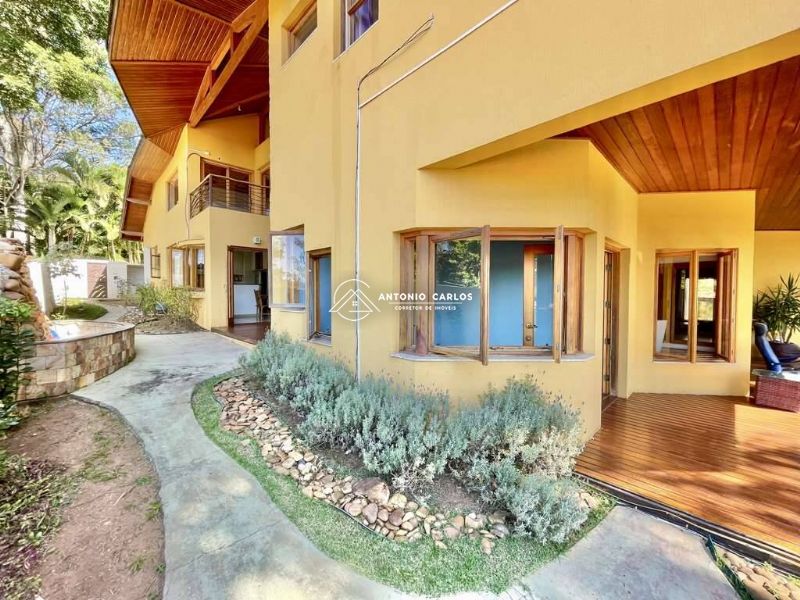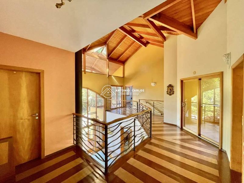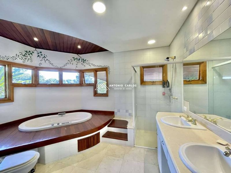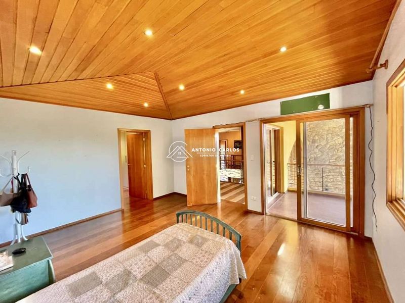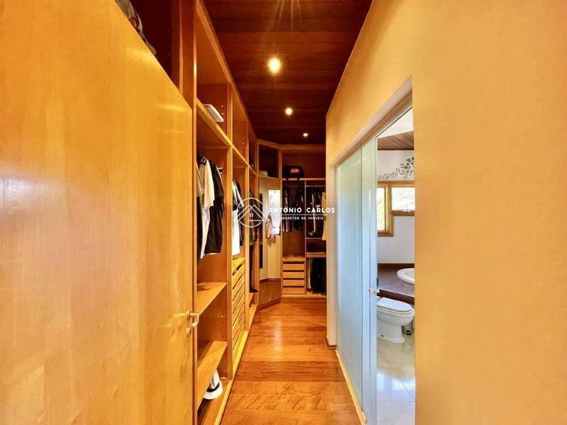5 suítes. 4 no piso superior com closets, armários e varandas. Sendo a suíte master com lareira e closet sr e sra e 1 suíte de HÓSPEDES / SERVIÇO com acessibilidade no térreo.