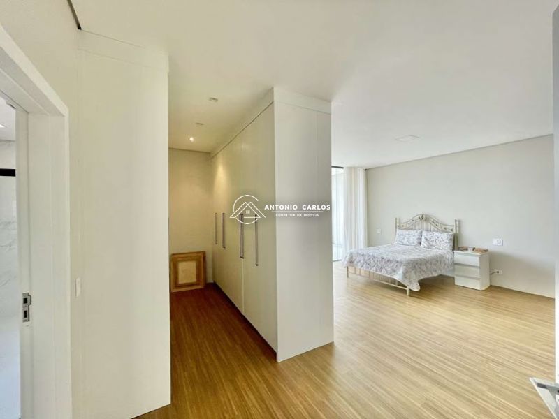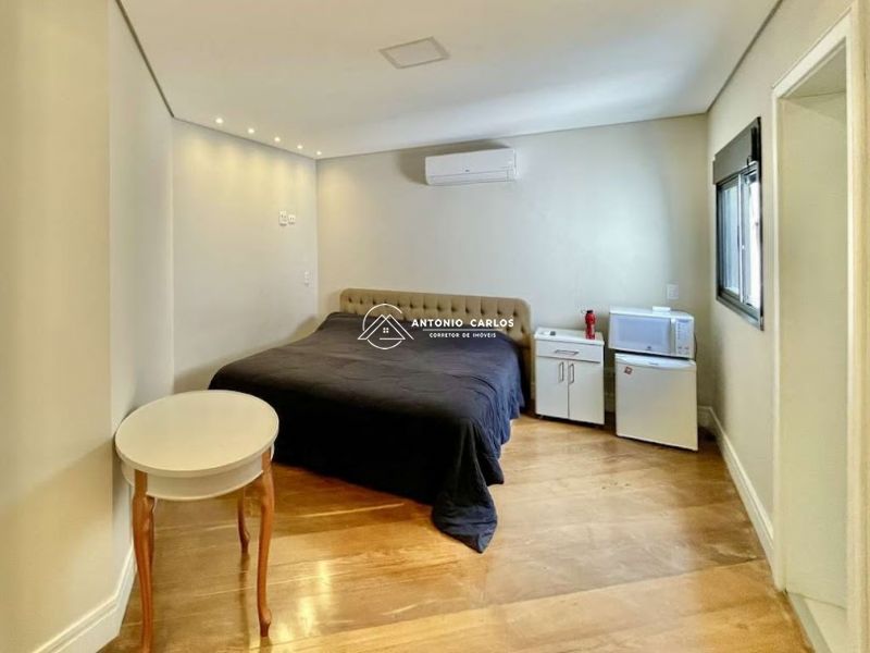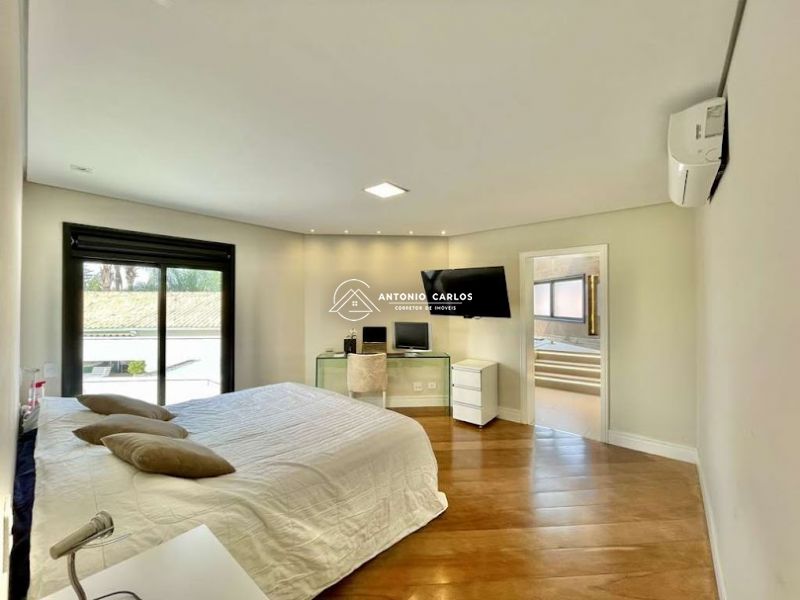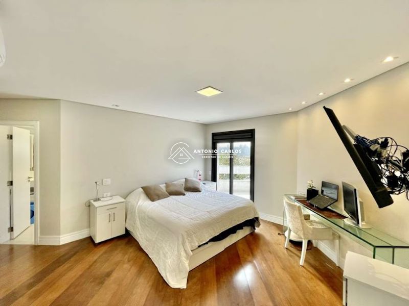 6 suítes amplas com armários, sendo 5 stes no piso superior, 2 com ar condicionado Q e F e 1 ste no térreo com ótima acessibilidade, reversível para hóspedes ou escritório, com varanda e quintal.