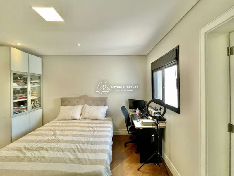 2 suítes masters com terraço, guarda corpo de vidro e vista para reserva natural, uma delas com 66 m² e outra com closet. Ambas repletas de armários planejados.