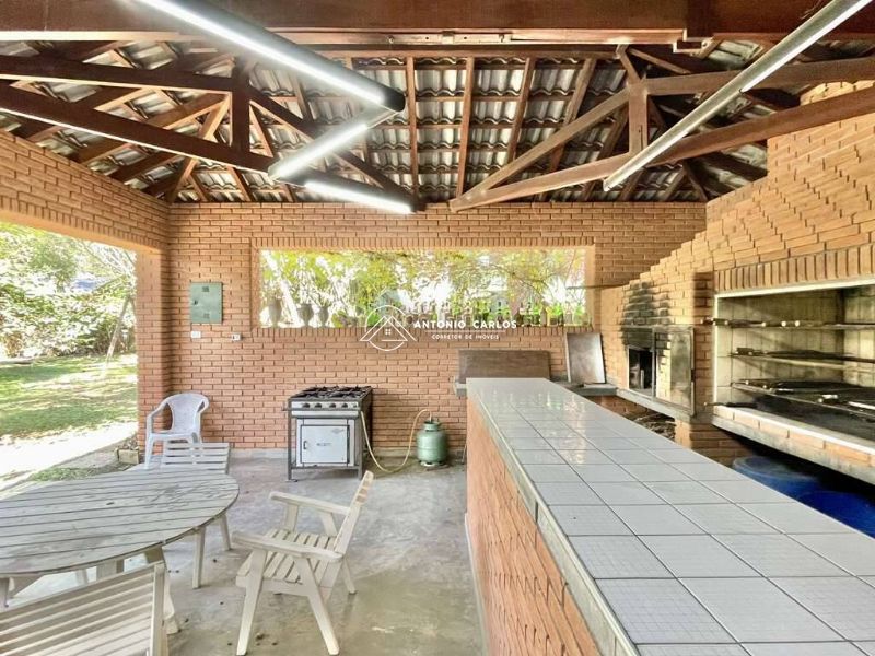 SALÃO DE FESTAS GOURMET com churrasqueira, forno, bancada, pia, 2 cubas inox, balcão e despensa.