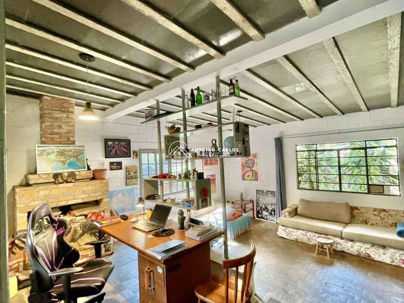 Estar/TV, lareira, jantar, escritório.