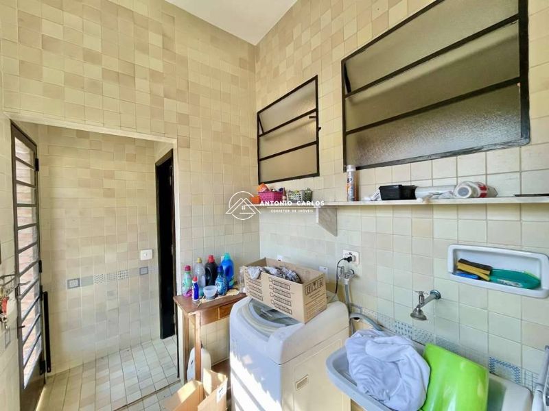 Área de serviço aberta ensolarada com 2 tanques e lavanderia fechada com 1 tanque e suíte de serviço.